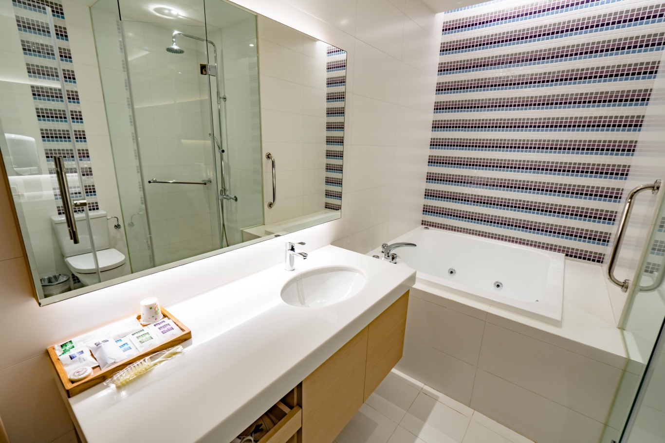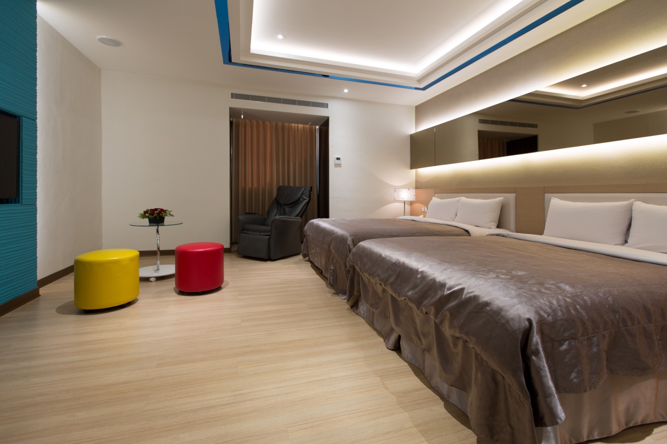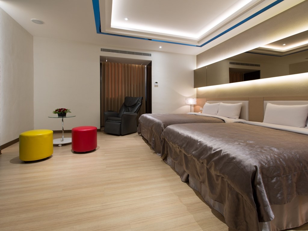 50"電視 水力按摩浴缸、淋浴花灑 按摩椅或情趣椅(可向櫃枱詢問) 可調整式冷暖空調 吹風機 免費無線/有線上網系統 房內招待:礦泉水、飲料、茶包、三合一咖啡、精緻小餅乾。 房內提供:沐浴乳、洗髮精、香皂、毛巾、浴巾、拖鞋。 響應政府的環保減塑政策,客房內將不再主動提供下列一次性備品:牙刷、牙膏、浴帽、刮鬍刀、梳子,如有需要可洽櫃枱。